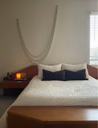 Each floating nightstand features one large drawer. The foot end is a storage chest/ bench!