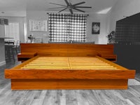 Vintage Danish Teak Standard King Platform Bed with Floating nightstands.