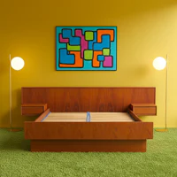 Vintage Post Modern Electric Blue Platform Bed with nightstands
