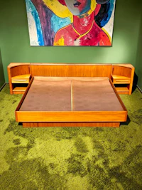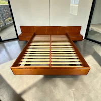 Vintage Mid Century Danish Modern Teak QUEEN Platform Bed w/ floating nightstands