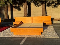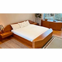 Each floating nightstand features one large drawer. The foot end is a storage chest/ bench!