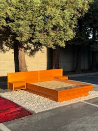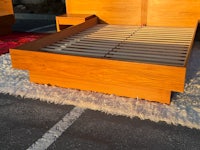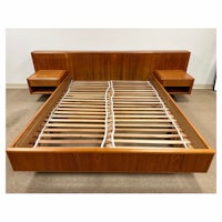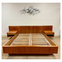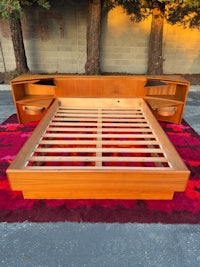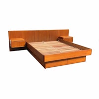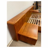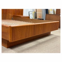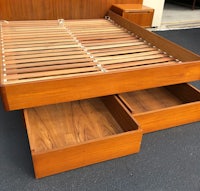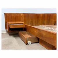 We have another one of these Vintage Mid Century Modern Teak QUEEN Platform Bed by D-Scan... Part of the "Captain's Line" which is noted for its signature brass ring drawer pulls, gently curved side rails and waterfall style rounded edges with a signature finger joinery detail.