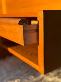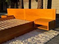 This queen size Danish Modern teak platform bed set by Scan Coll has SO many good features!