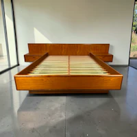 Vintage Mid Century Danish Modern Teak QUEEN Platform Bed w/ floating nightstands